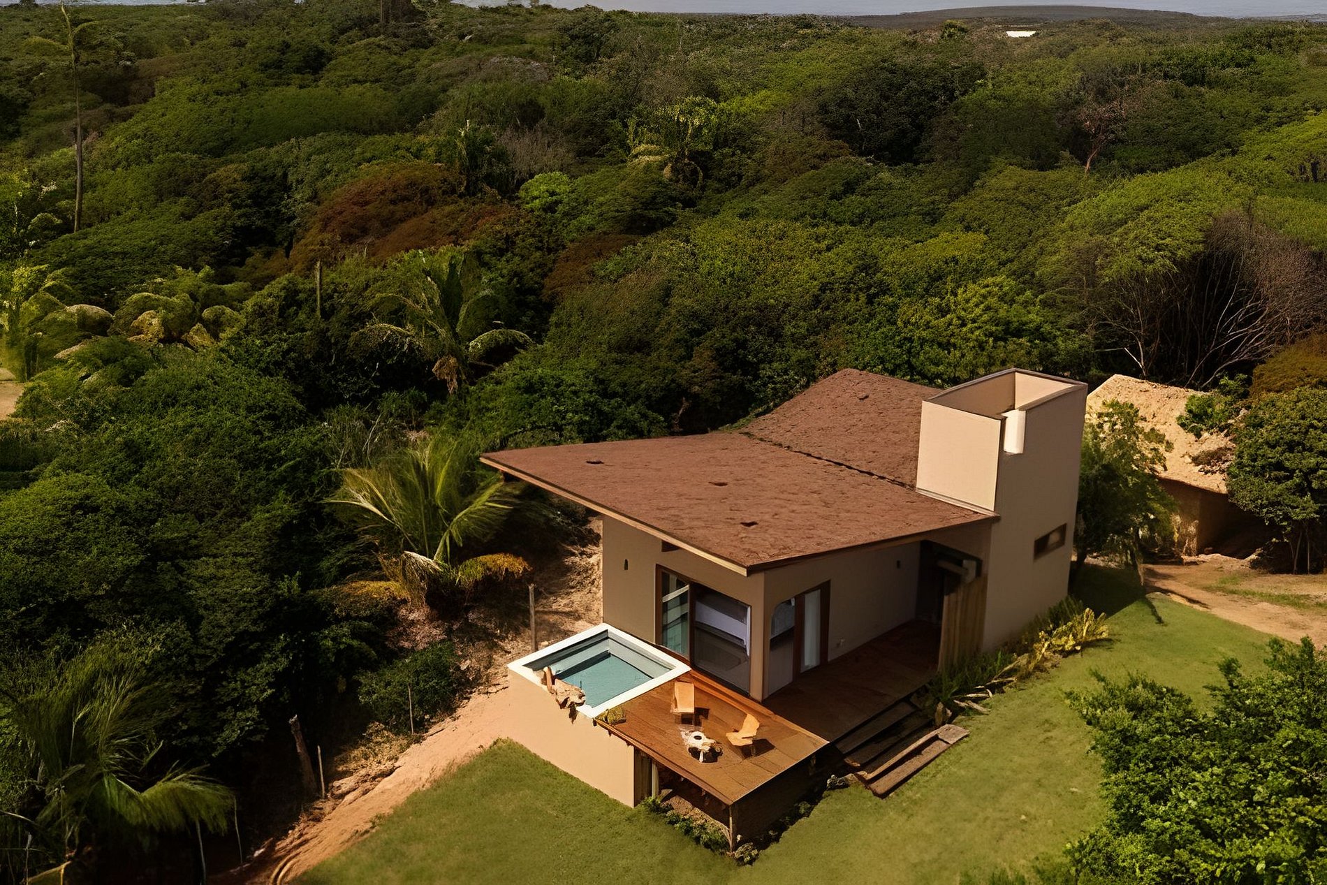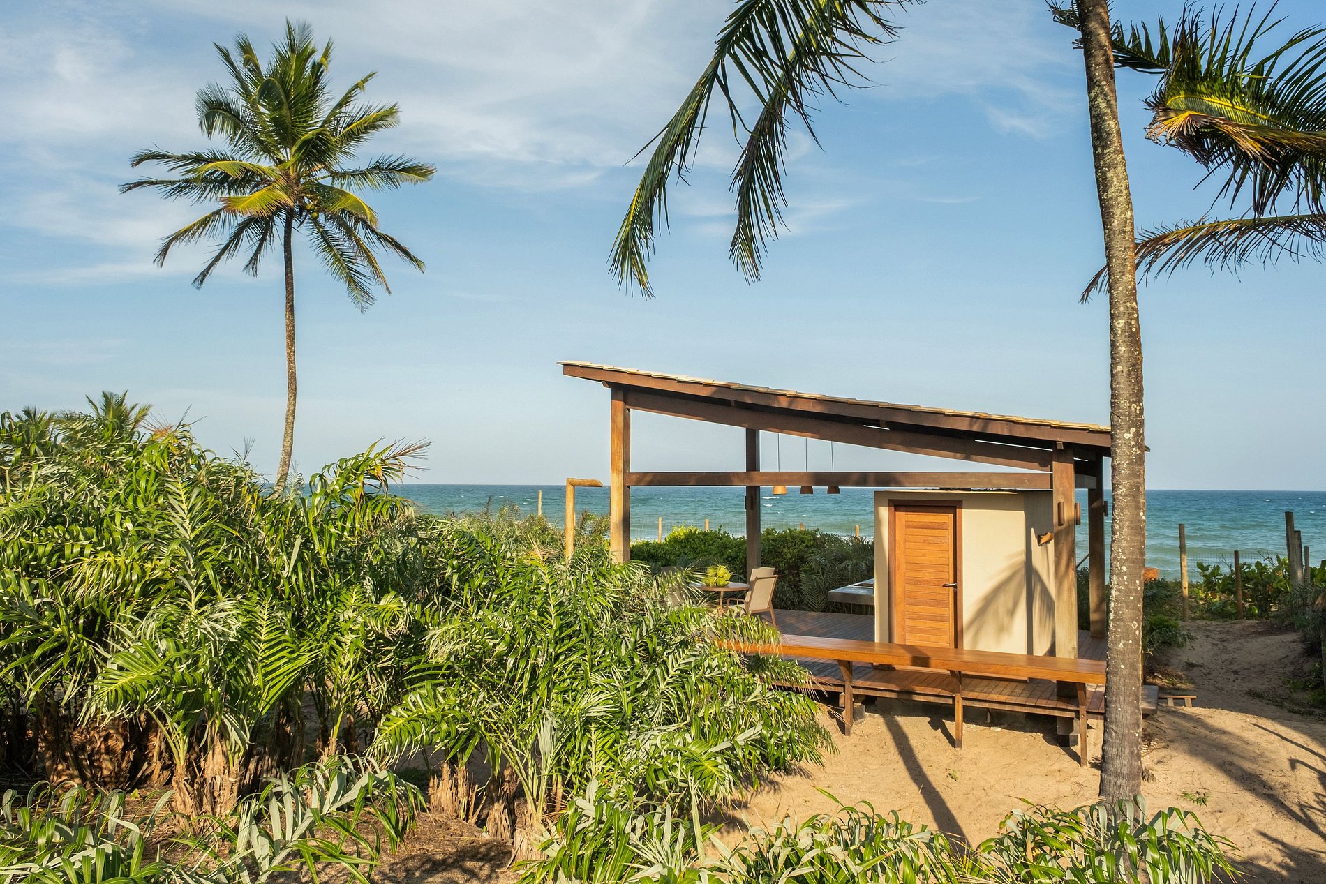 O Bangalô Maré foi feito para dois. Arquitetura rústico-contemporânea, piscina privativa com vista para o mar e acesso direto à Praia do Cassange — uma das praias mais preservadas do Brasil.